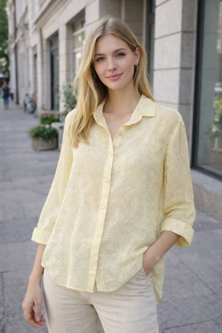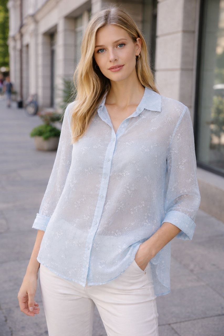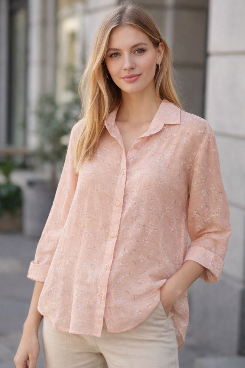 شومیز حریر شیشه‌ای مدل پشت پیله | آستین پاکتی طرح شکوفه