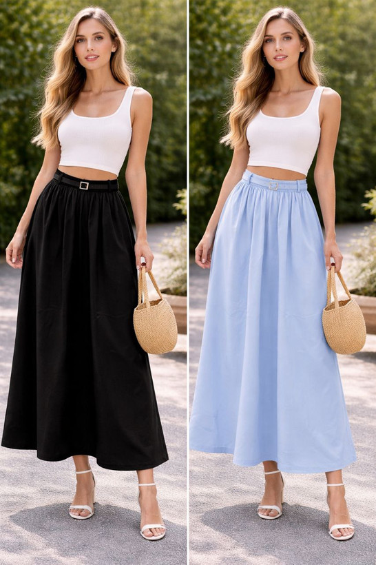 شما میتوانید این دامن را به تنهایی خریداری کنید یا آن را با مجموعه تاپهای متنوع و جذاب موجود در سایت ما ست کنید. همانطور که در تصاویر مشاهده میکنید، ترکیب این دامن با یک کراپتاپ یا تاپهای فانتزی، استایلی خیرهکننده برای دورهمیها و سفرهای تابستانی شما میسازد.