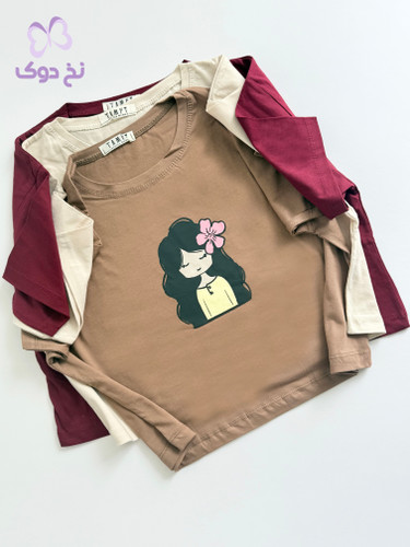تیشرت نخی گلدوزی طرح پاپیون