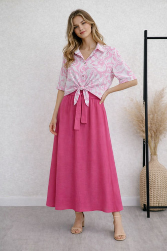 ست شومیز نخی گرهای طرحدار و دامن بلند