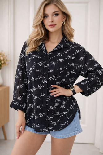 شومیز حریر شیشهای مدل پشت پیله | آستین پاکتی طرح شکوفه