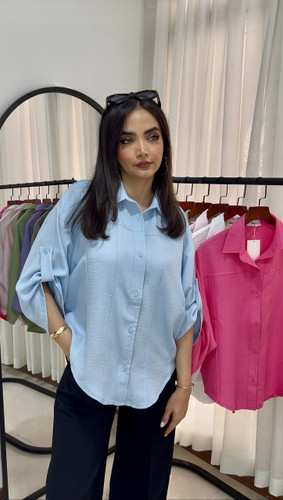 شومیز آستین کوتاه پارچه پفکی مدل جیبدار